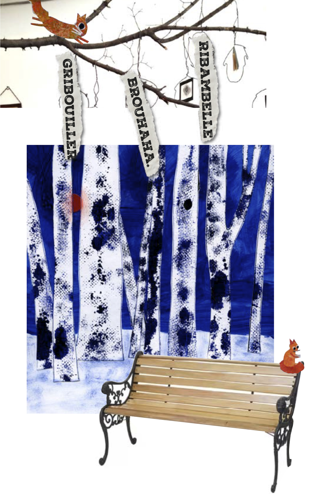 Des mots tombent du journal d’un passant. C’est un inconnu sans attache apparente, pourtant c’est grâce à lui que l’écureuil forme sa collection de mots et s’émerveille chaque jour. Deux corbeaux proposent des interprétations alternatives des mots égarés et invitent le lecteur à détourner l’ordinaire.